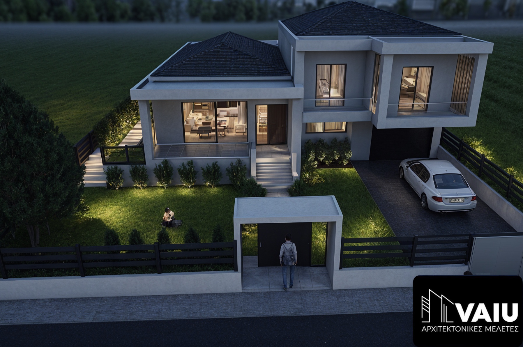Αρχιτεκτονική μελέτη και επίβλεψη σύγχρονης κατοικίας 127 τ.μ. με πυλωτή στην Καρδίτσα
