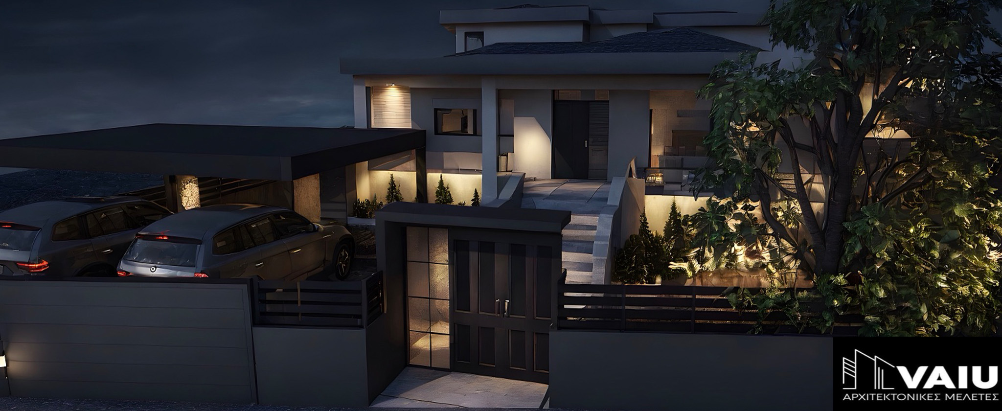Η μελέτη αφορά τη δημιουργία μιας σύγχρονης διώροφης κατοικίας στην Καρδίτσα, σχεδιασμένης με έμφαση στη λειτουργικότητα, τη γεωμετρική καθαρότητα και τη φυσική φωτεινότητα. Η αρχιτεκτονική σύνθεση βασίζεται σε απλές γραμμές και καθαρές αναλογίες, δημιουργώντας μια λιτή αλλά εκφραστική μορφή. Οι μεγάλοι υαλοπίνακες και οι ανοιχτοί χώροι ενισχύουν τη σύνδεση του εσωτερικού με το περιβάλλον, προσφέροντας άνεση και οπτική συνέχεια. Η επιλογή υλικών και χρωματικών συνδυασμών αποδίδει διακριτική κομψότητα, ενώ ο συνολικός σχεδιασμός αποπνέει ισορροπία, απλότητα και διαχρονικό χαρακτήρα. Το αποτέλεσμα είναι μια κατοικία που αποτυπώνει τη φιλοσοφία του γραφείου για σύγχρονη, ανθρώπινη και λειτουργική αρχιτεκτονική.