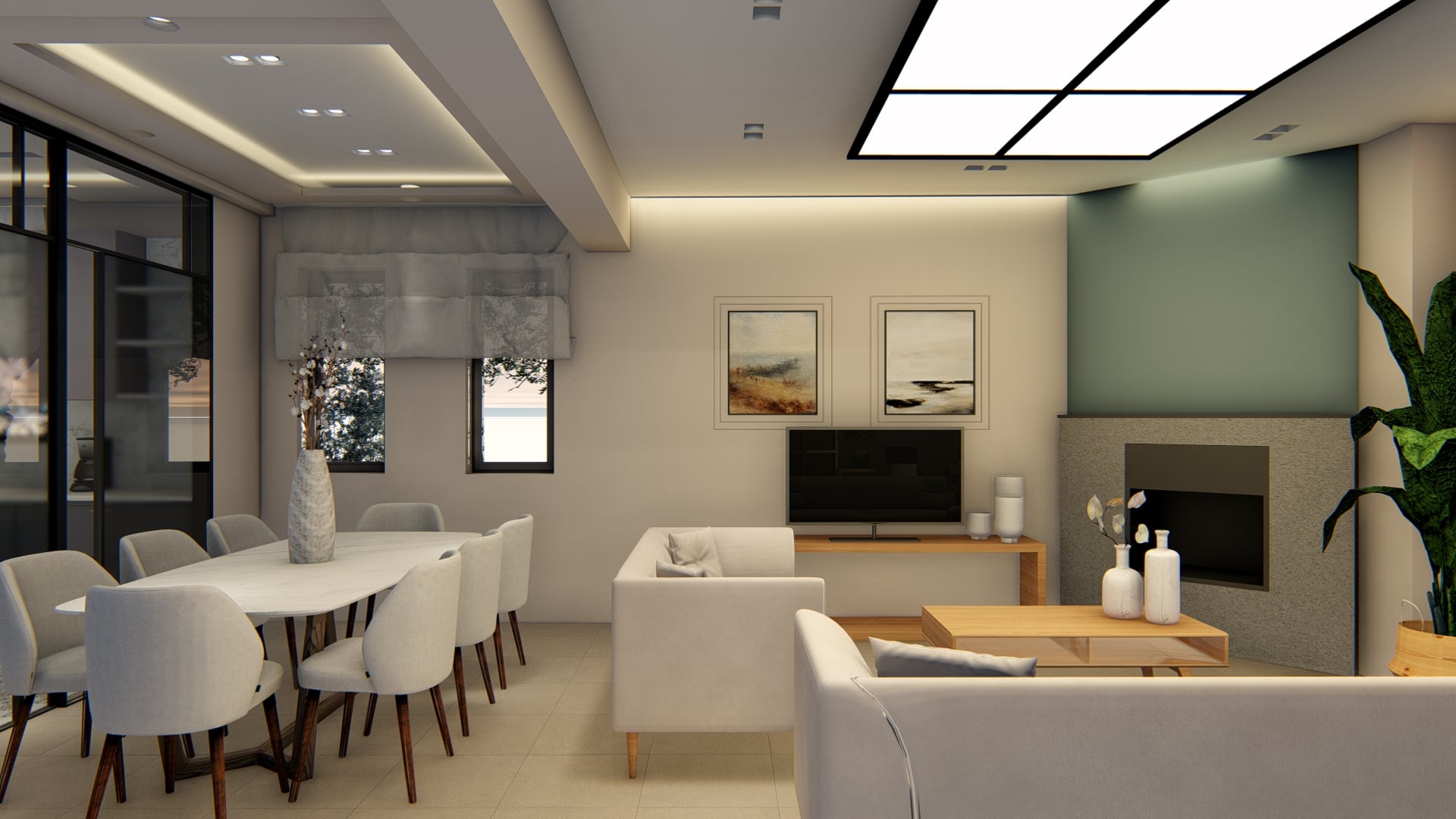 Η ανακαίνιση του διαμερίσματος στη Φιλοθέη αποτελεί μια ολοκληρωμένη αρχιτεκτονική και διακοσμητική παρέμβαση που στοχεύει στη δημιουργία ενός σύγχρονου, ζεστού και απόλυτα λειτουργικού χώρου κατοίκησης. Η αρχιτεκτονική σύνθεση βασίζεται σε καθαρές γραμμές, ισορροπημένες γεωμετρίες και ήπιες χρωματικές αντιθέσεις, που συνδυάζουν τη διαχρονική αισθητική με τη σύγχρονη άνεση. Τα μεγάλα ανοίγματα και η διάχυση φυσικού φωτός ενισχύουν τη διαφάνεια του χώρου και αναδεικνύουν τα υλικά και τις λεπτομέρειες του σχεδιασμού. Στο καθιστικό και την τραπεζαρία κυριαρχούν απαλές τόνοι, φυσικές υφές και φωτισμός που τονίζει τον αρχιτεκτονικό όγκο και την ατμόσφαιρα. Η ενιαία διάταξη των χώρων εξασφαλίζει ομαλή ροή και άνεση στην καθημερινή χρήση, ενώ στοιχεία όπως η ξύλινη βιβλιοθήκη, τα διακριτικά ανάγλυφα στους τοίχους και οι minimal λεπτομέρειες πυροδοτούν μια ισορροπία μεταξύ κομψότητας και ζεστασιάς. Η κουζίνα οργανώνεται εργονομικά με καθαρές γραμμές και παστέλ αποχρώσεις, προσφέροντας έναν λειτουργικό και ήσυχο χώρο καθημερινότητας. Αντίστοιχα, οι διάδρομοι και οι μεταβατικοί χώροι φωτίζονται με έμμεσο φωτισμό που δημιουργεί ατμόσφαιρα και καθοδηγεί τη διαδρομή μέσα στο σπίτι. Το αποτέλεσμα είναι ένα σπίτι που εκφράζει την αρχιτεκτονική φιλοσοφία του γραφείου: σύγχρονη αισθητική, ήρεμη πολυτέλεια και λειτουργικά ολοκληρωμένη εμπειρία διαβίωσης, σχεδιασμένη γύρω από τις ανάγκες και τον τρόπο ζωής των κατοίκων.