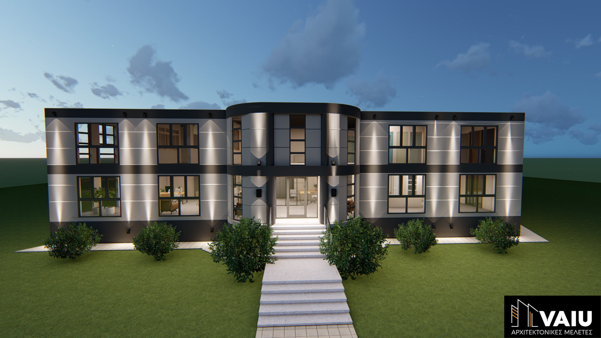 Η μελέτη αφορά την ανακαίνιση και επαναδιαμόρφωση βιοτεχνικού κτιρίου κατασκευής αλουμινίου, με στόχο την αναβάθμιση της λειτουργικότητας και της εταιρικής ταυτότητας του χώρου. Η αρχιτεκτονική σύνθεση συνδυάζει σύγχρονες γραμμές, βιομηχανικά υλικά και καθαρή γεωμετρία, αποδίδοντας ένα αποτέλεσμα που εκφράζει τεχνολογική πρόοδο και επαγγελματισμό. Στην εξωτερική όψη, το μοντέρνο περίβλημα από πάνελ αλουμινίου σε συνδυασμό με φωτιστικές επενδύσεις, ενισχύει τον όγκο του κτιρίου και προσδίδει δυναμικό χαρακτήρα. Στο εσωτερικό, ο σχεδιασμός εστιάζει στη λειτουργικότητα των γραφειακών χώρων, με έμφαση στη φωτεινότητα, την εργονομία και την καθαρότητα των επιφανειών. Οι ουδέτεροι τόνοι και οι ξύλινες λεπτομέρειες εξισορροπούν τη βιομηχανική αισθητική, δημιουργώντας ένα ζεστό και επαγγελματικό περιβάλλον εργασίας. Το έργο εκφράζει τη φιλοσοφία της βιώσιμης αρχιτεκτονικής και της αισθητικής ανανέωσης, προσδίδοντας νέα ταυτότητα σε έναν χώρο παραγωγής με ισχυρή βιομηχανική ιστορία.